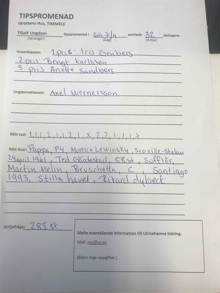 Här kommer resultatet från en blåsig tipsrunda där vi fick jaga frågor som blåst iväg…😅 Skönt med go fika efteråt Timmele GoIF 14 apr 2024 0kommentarer