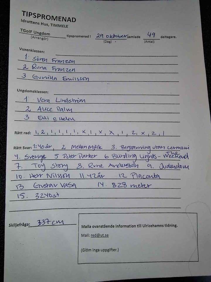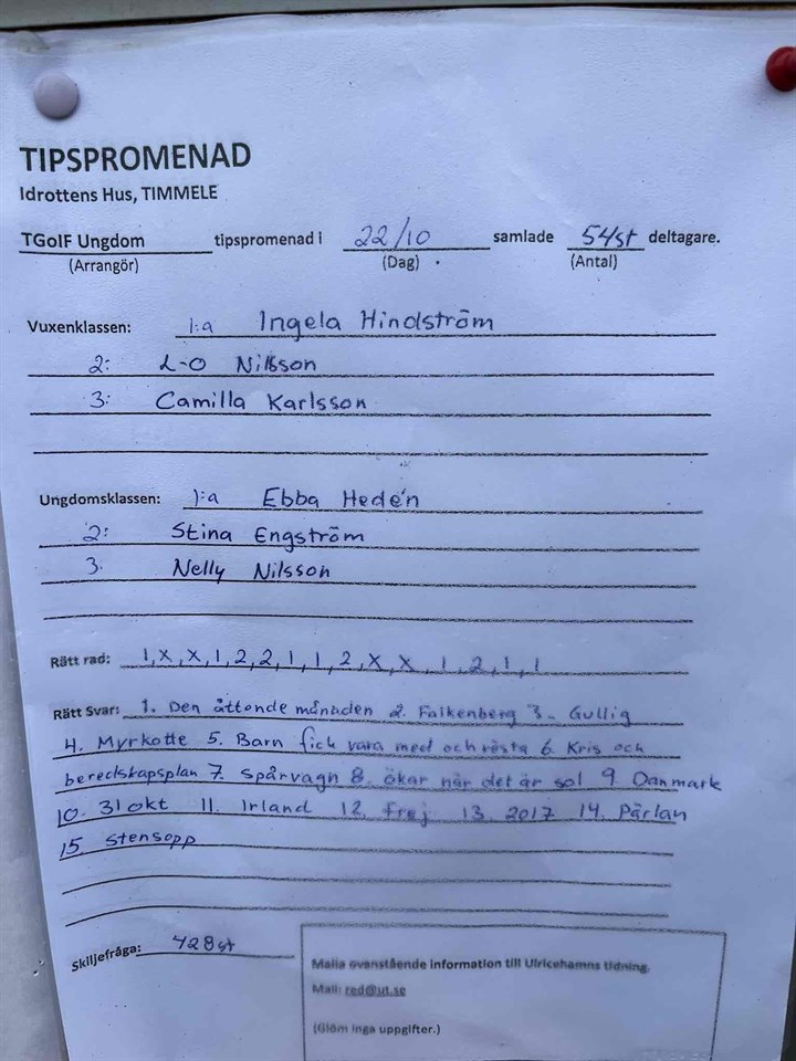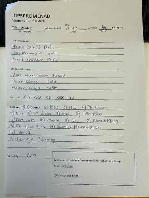 Här kommer resultatet från förra veckans tipspromenad Grattis till vinnarna och tack till alla som går Timmele GoIF 4 nov 2023 0kommentarer
