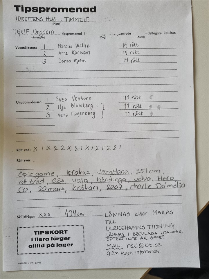 Här kommer resultatet från dagens tipspromenad 3/4 Tack alla som bidrog och grattis till vinnarna👏 Timmele GoIF 3 apr 2022 0kommentarer