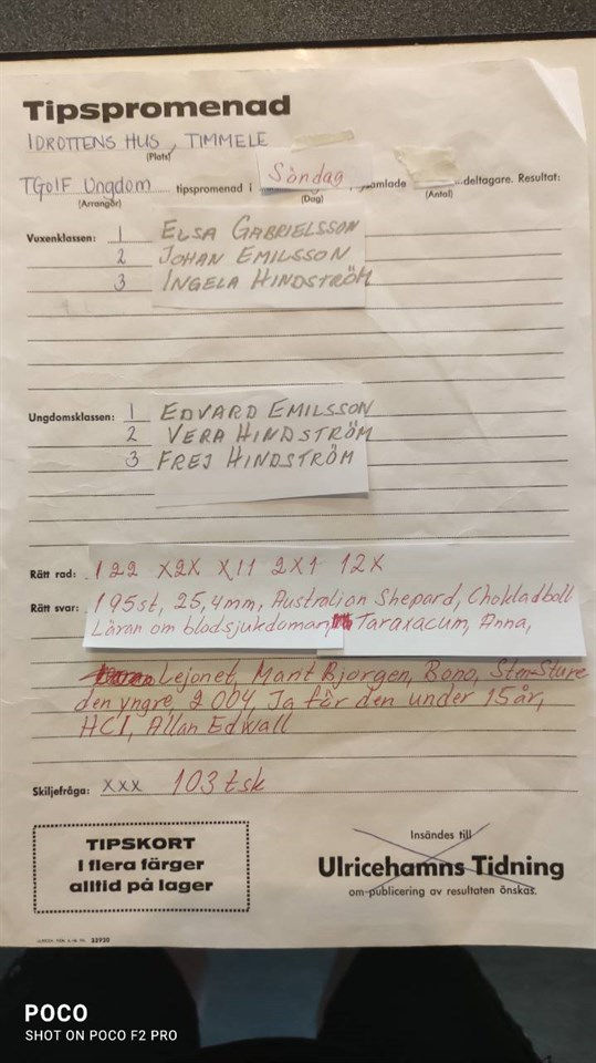 Här kommer resultatet från tipspromenaden i söndags 10/4 Det var många som gick vår populära promenad Nästa tipspromenad är måndag annandag påsk 🐣 10-11.30 Välkomna! Timmele GoIF 11 apr 2022 0kommentarer