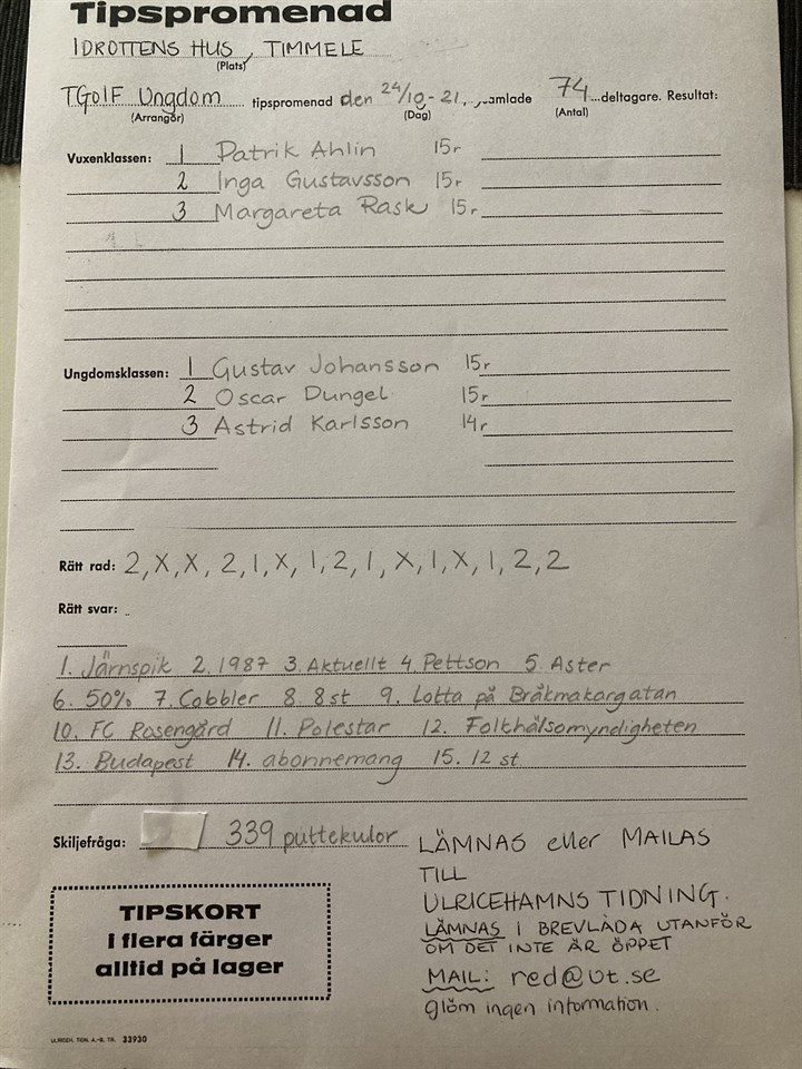 Här kommer resultatet från dagens tipspromenad. Bra frågor och bra kämpat alla som gick👍 Timmele GoIF 24 okt 2021 0kommentarer