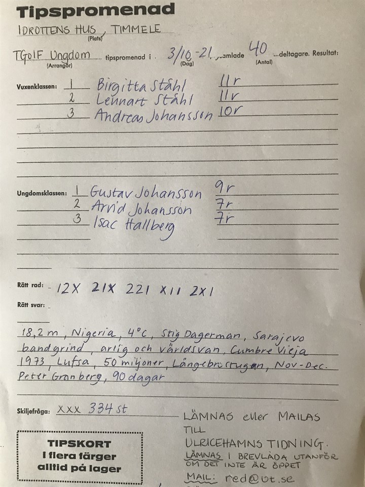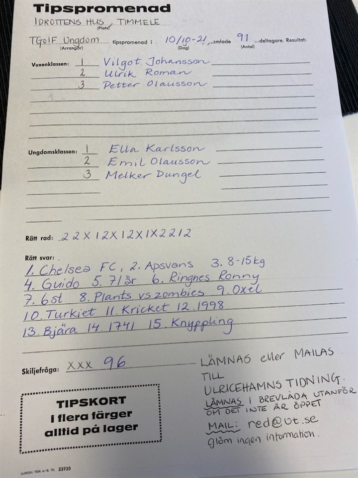 Det var nÄgra som trotsade regn o blÄst och gick vÄr tipspromenad idag. HÀr kommer resultatet Timmele GoIF 3 okt 2021 0kommentarer